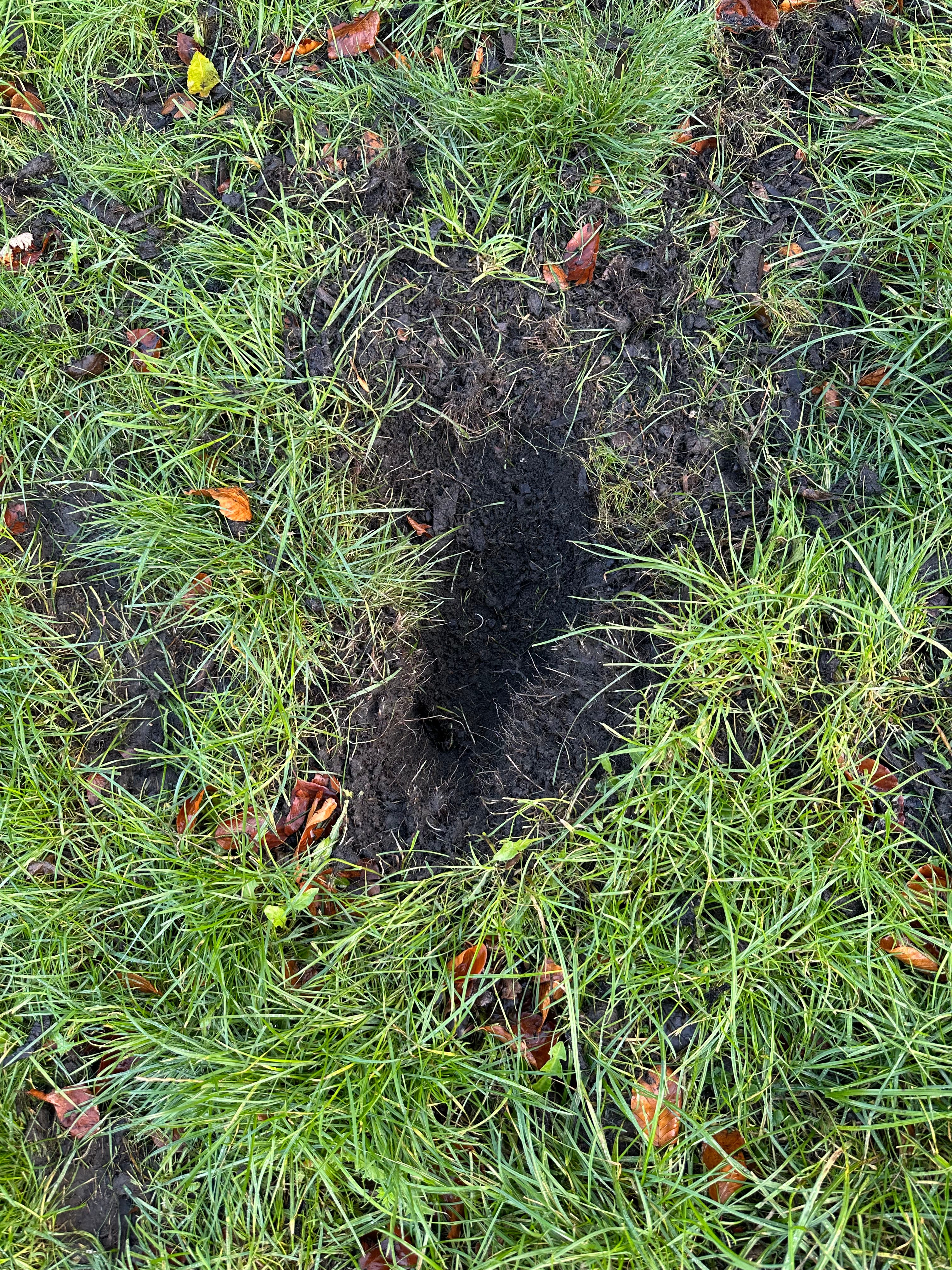 And gone deep and narrow for his new hole. (Is this better, do we think? Does he think? Sigh.)