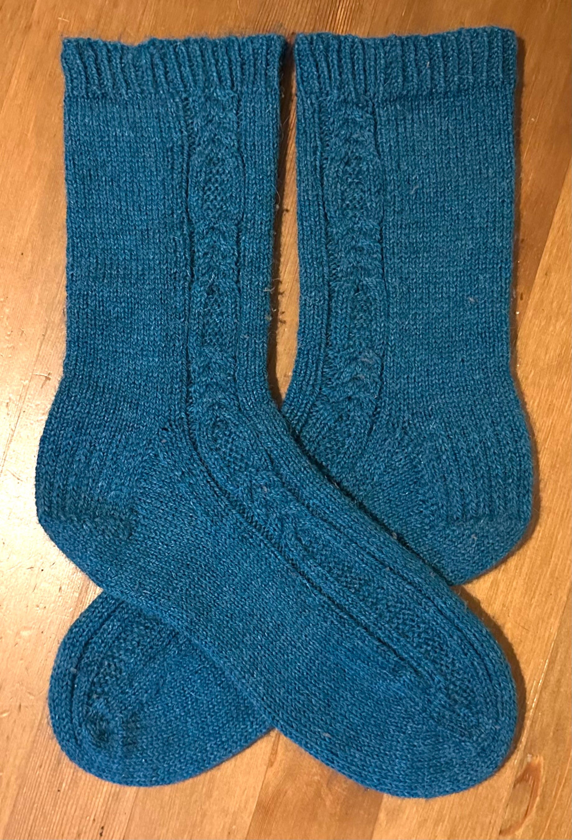 The socks I mentioned last time we talked knitting have been gifted, so I can show you: